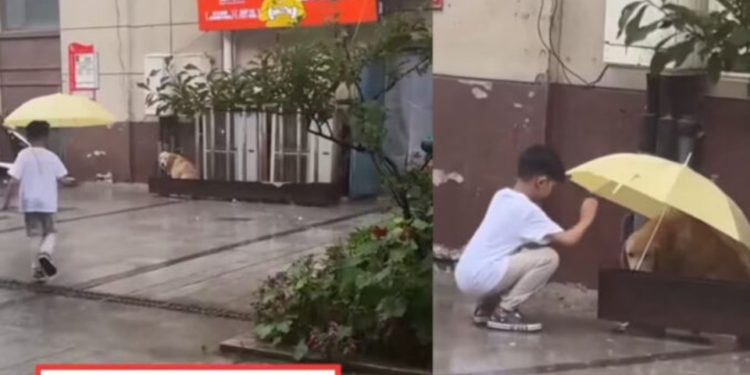 En el clip se observa cómo el pequeño, sin pensarlo dos veces, se acerca al animal para cubrirlo con su paraguas, demostrando una enorme empatía y bondad. El video, que lleva por descripción «La fe en la humanidad ha sido restaurada», ha acumulado miles de reacciones positivas.