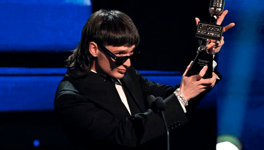 El artista originario de Jalisco se coronó como el ganador absoluto en la categoría de Artista Debut del Año. Durante su emotivo discurso de agradecimiento, Peso Pluma dedicó su premio no solo a sus fieles seguidores y amigos cercanos, sino también a su amado país, México.
