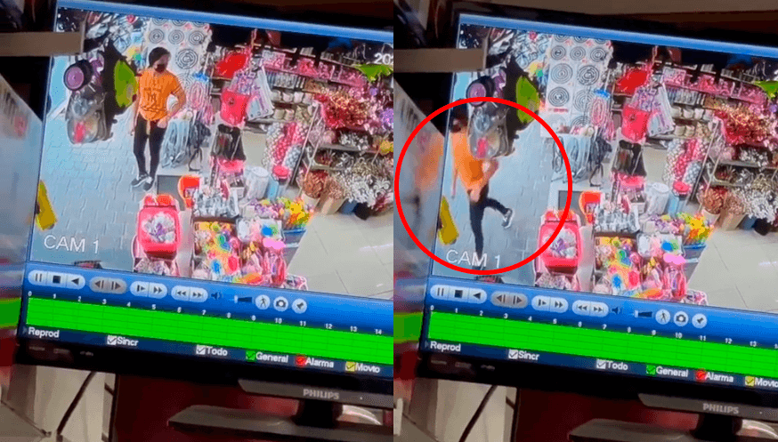 En las imágenes, se puede ver a la joven parada en la entrada de la tienda de regalos. Luego, voltea hacia el interior y, sin decir una palabra, sale rápidamente del lugar.