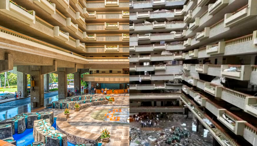 En los videos compartidos en las redes sociales, se puede apreciar el estado del lobby del Hotel Princess Mundo Imperial, donde un automóvil quedó atrapado entre escombros, camastros, y fragmentos de materiales como madera y metal. Este hotel, que se ubica en la ‘Zona Dorada’ de Acapulco, es un establecimiento turístico de cuatro estrellas que en ese momento albergaba la XXXV Convención Internacional de Minería de la Asociación de Ingenieros de Minas, Metalurgistas y Geólogos de México.